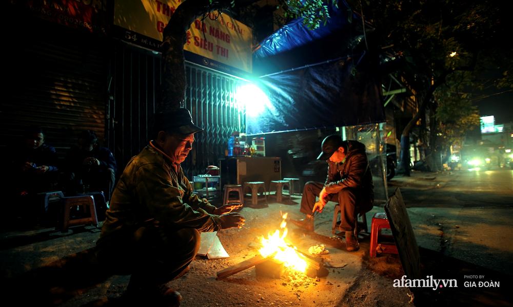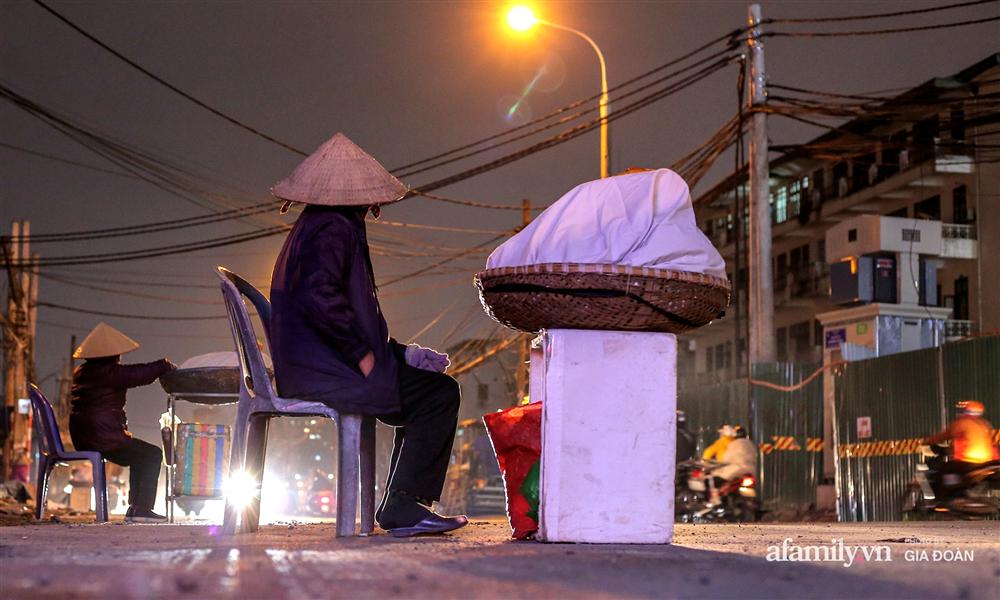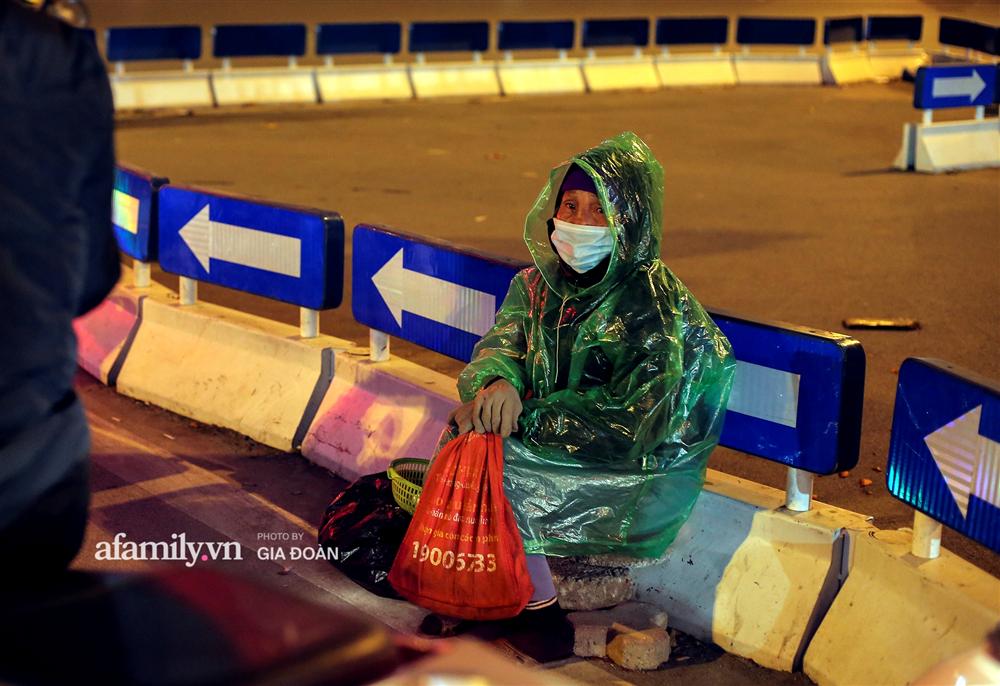 Trời về đêm lạnh buốt, cụ già mặc thêm áo mưa ngồi ngay giữa ngã tư.