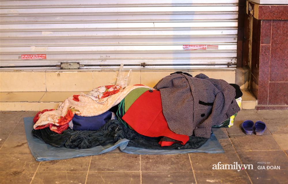 Cứ mỗi khi hàng quán đóng cửa thì những người này mới lại ra đây trải chiếu hoặc mấy miếng bìa giấy để ngủ. Thấy có người lạ đến hỏi thì họ sẽ ngồi dậy rồi rời đi như sợ sệt điều gì đó.