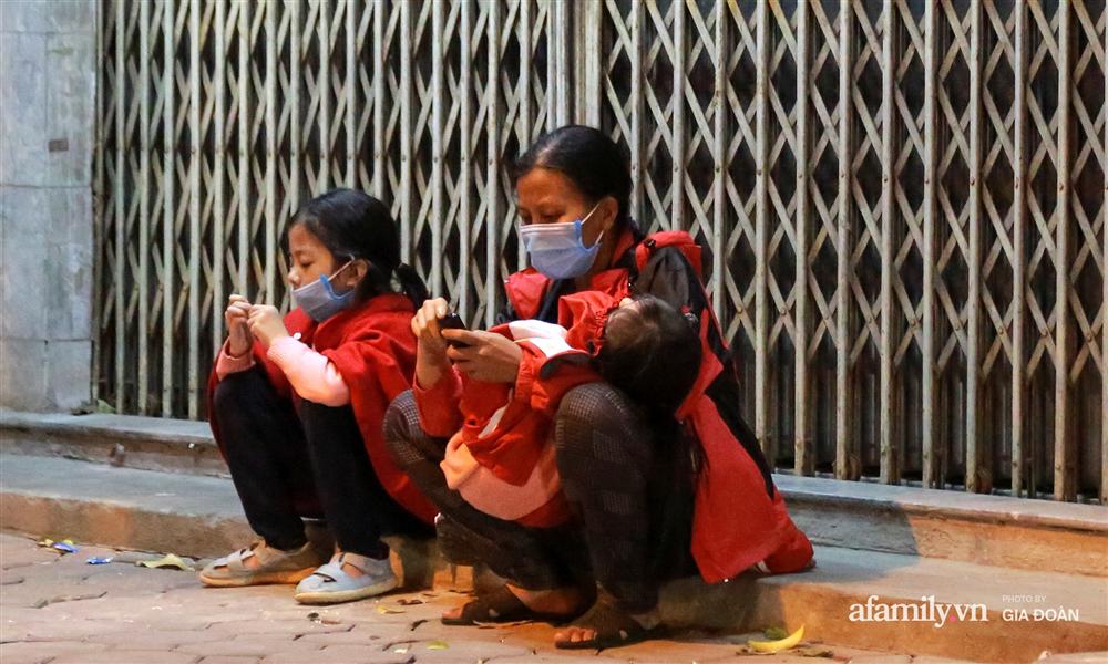 Gần nửa đêm, bà mẹ trẻ mang theo hai đứa nhỏ ngồi vạ vật trước một cửa hàng trên phố Hai Bà Trưng.
