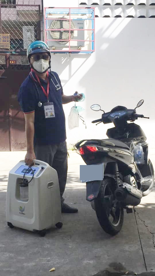 Bác sĩ Tr. lên đường, mang theo máy nén oxy, máy đo oxy máu, mặt nạ túi khí, ống nghe... Mấy đồ nghề sẵn có lúc chăm bệnh cho má. Đến nơi, trình thẻ bác sĩ mới được cho vô hẻm.