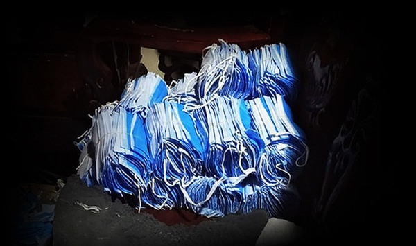 Tuy nhiên, qua kiểm tra, cơ quan chức năng ước tính sơ bộ con số này lên tới 2 tấn. Số khẩu trang này đã được xếp gọn trong hàng chục bao tải lớn nhỏ được chất chồng ngổn ngang lên nhau.
