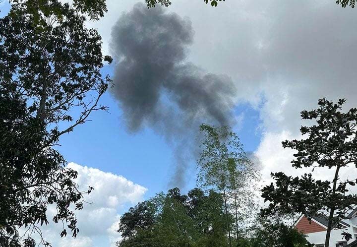 Khói bốc ra từ hiện trường vụ máy bay quân sự rơi ở Quảng Nam.