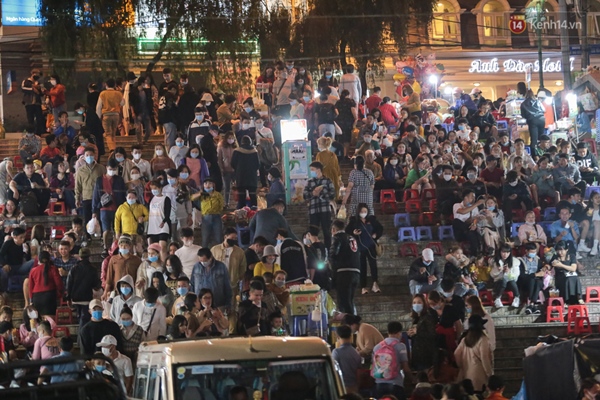 Song song với loa phát thanh, Tổ kiểm tra lưu động liên ngành của UBND TP. Đà Lạt phối hợp cùng các phường trung tâm cũng đi kiểm tra, nhắc nhở người dân chấp hành các biện pháp phòng chống dịch Covid-19 nhưng do khách quá đông, không thể kiểm soát hết.