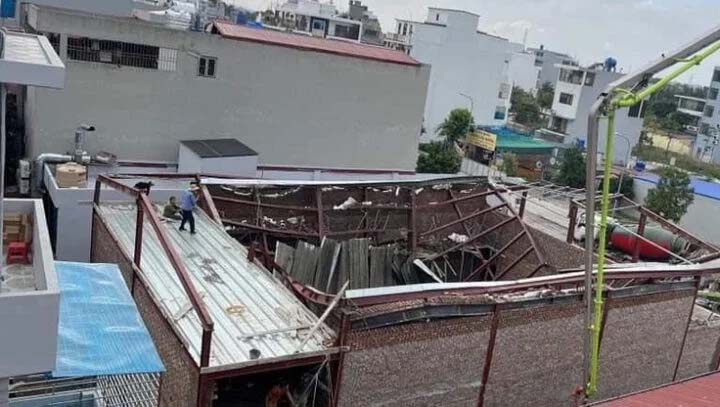 Ngôi nhà rộng khoảng 50m2, xây một tầng kết cấu khung bằng thép. Thời điểm này, nhóm 13 công nhân đang đổ bê tông mái tầng 1 công trình thì phần mái bị sập.