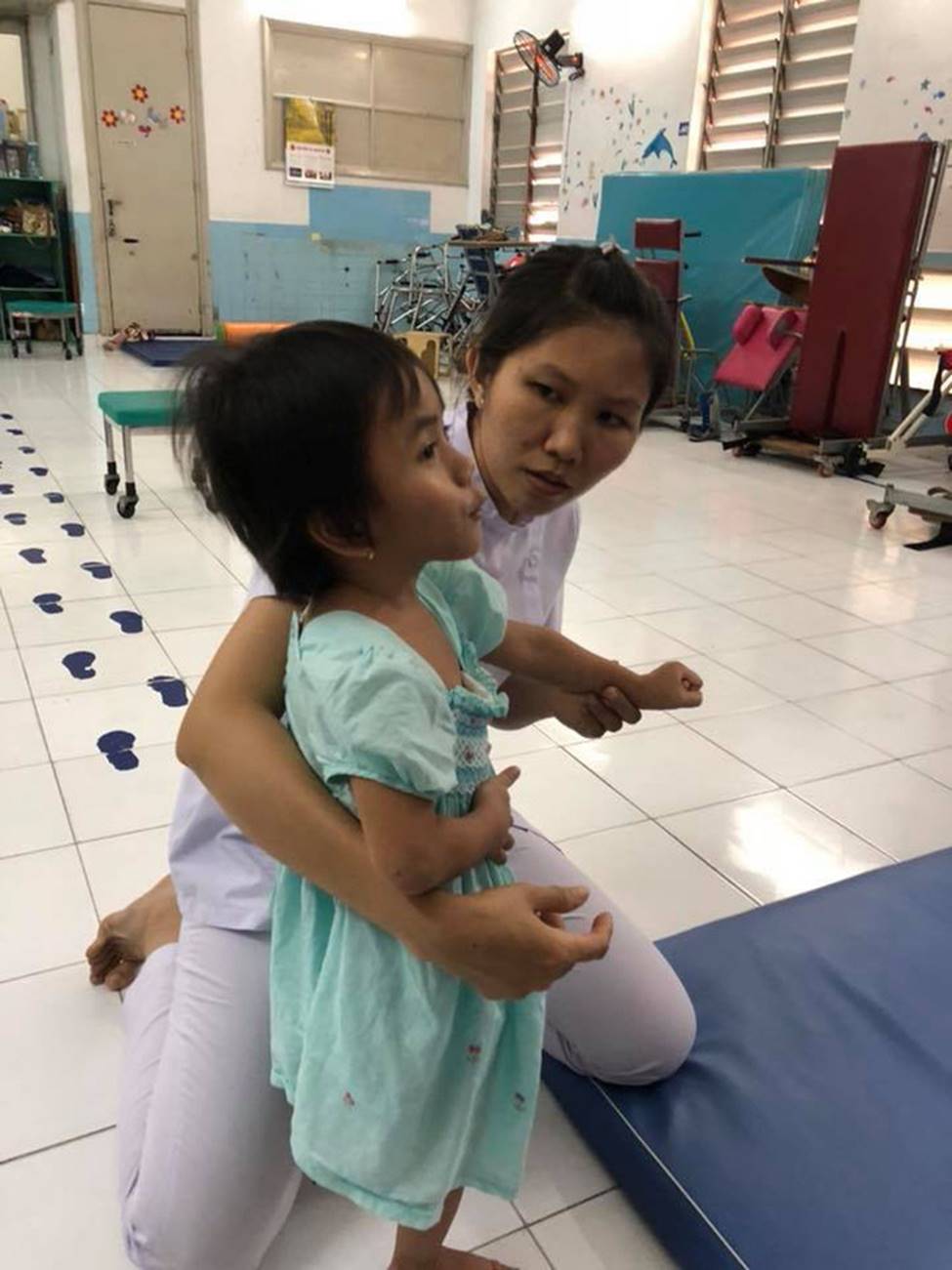 "7/9/2018. Và rồi cô ấy cũng đã được đến trường. Một nơi khá tốt để tiếp tục trị liệu đôi chân và được học chữ" - mẹ nuôi bé Pàng, cô bé Mường Lát trần truồng ngồi trên đất lạnh ngày nào chia sẻ.