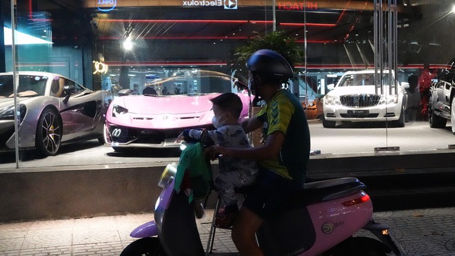 Bên ngoài có khá nhiều người dân hiếu kỳ. Có người tranh thủ lại ngắm cũng như chụp hình những chiếc siêu xe đó