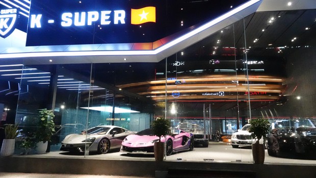 Showroom K-Super của Phan Công Khanh có diện tích 532m2 và từng trưng bày hàng chục siêu xe và xe siêu sang đến từ những thương hiệu lừng danh thế giới như Lamborghini, Ferrari, McLaren, Porsche hay Rolls-Royce.