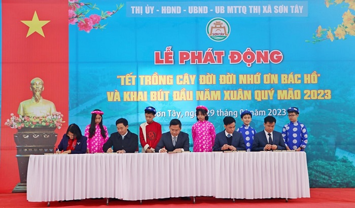 * Sáng cùng ngày, tại Khu di tích lịch sử Văn Miếu - xã Đường Lâm, UBND thị xã Sơn Tây tổ chức Lễ khai bút đầu năm và phát động Tết trồng cây Xuân Quý Mão 2023.