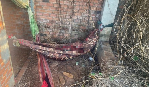 Tại hiện trường, thi thể người đàn ông nằm trên võng, quấn chiếc chăn tuyết nhung, phía dưới có đôi dép tông, một bên còn có thêm 1 chiếc võng nữa.