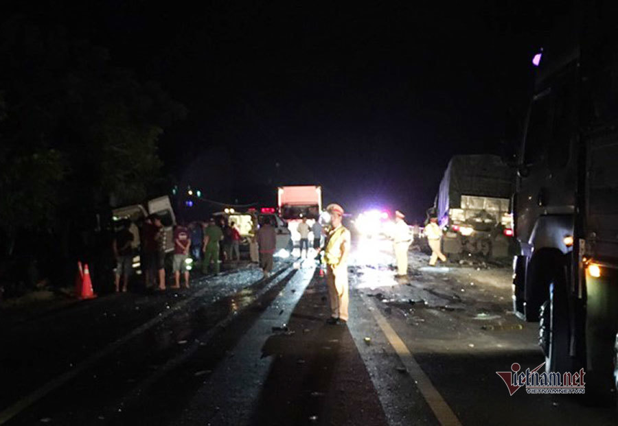 Vụ tai nạn giao thông thảm khốc xảy ra trên QL1A đoạn qua huyện Hàm Tân (Bình Thuận) khiến 8 người chết, 9 người bị thương.