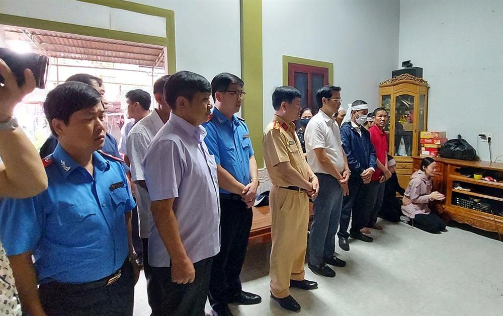 Đại diện Ban An toàn giao thông tỉnh Nghệ An cùng lãnh đạo huyện Đô Lương tới thắp hương, chia buồn cùng gia đình - Ảnh: Hoà Bình