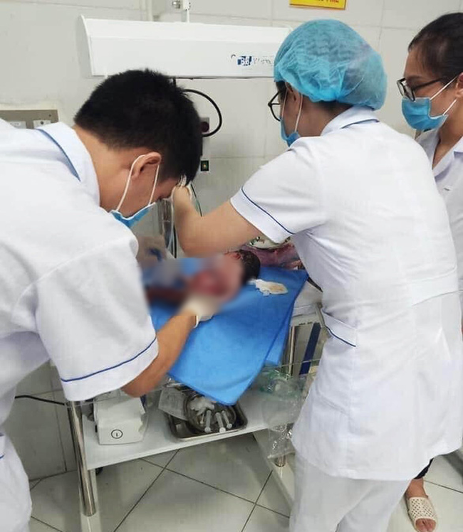 Hiện tại, cháu bé đã được đưa lên Bệnh viện Nhi tỉnh Thái Bình để cấp cứu.