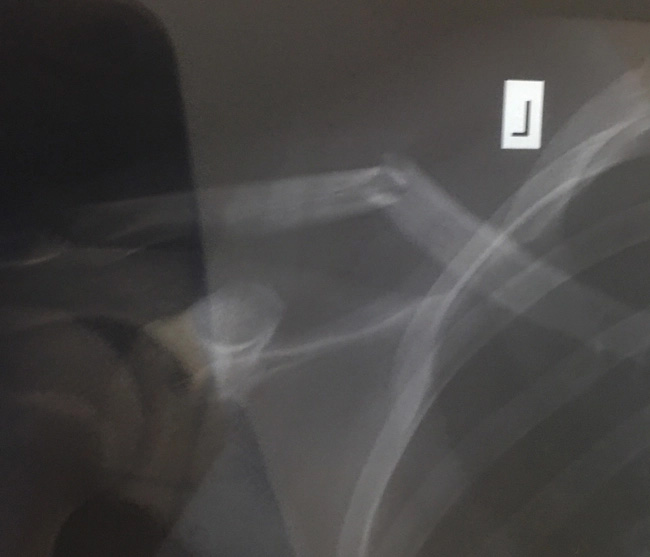 Về cánh tay bị gãy, người thân của cậu bé cho biết, hôm 27/6, trên đường đi học võ trở về Hải An bị tai nạn giao thông, cháu gãy xương quai xanh phải bó cố định.