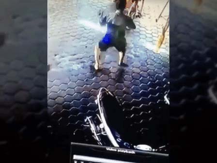 Theo tìm hiểu, đoạn video đã được hệ thống CCTV quay lại tại một cửa hàng sửa xe ở Jambi, Indonesia vào ngày 22/12 vừa qua. Người đàn ông anh hùng được xác định là cha của 2 em nhỏ. Trong khi đang sửa xe thì ông bố nghe thấy tiếng xe rất lớn đang tiến đến gần phía mình. Nhận thấy sự nguy hiểm, ông nhanh chóng lao tới ôm chặt lấy hai đứa con nhỏ và bật ngửa ra sau.
