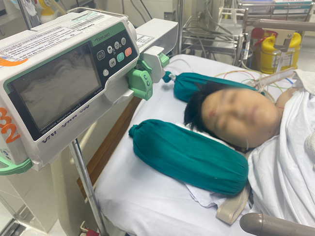 Chẩn đoán theo dõi gãy xương cẳng tay phải – chấn thương cột sống, chấn thương bụng kín. Tình trạng hiện tại của bé tỉnh, sinh hiệu ổn.