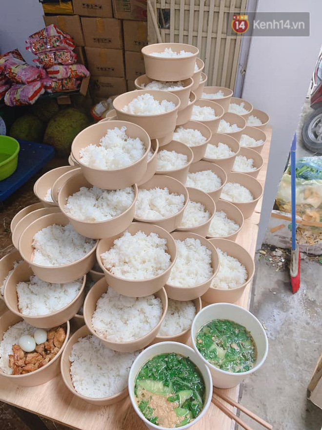 "Ngày đầu nấu 120 suất cơm với người chưa từng nấu nhiều nên tôi không làm kịp phải nhờ hàng xóm nấu hộ 5 nồi cơm, bạn bè xung quanh thấy tôi một mình cũng chạy đến phụ giúp một tay.