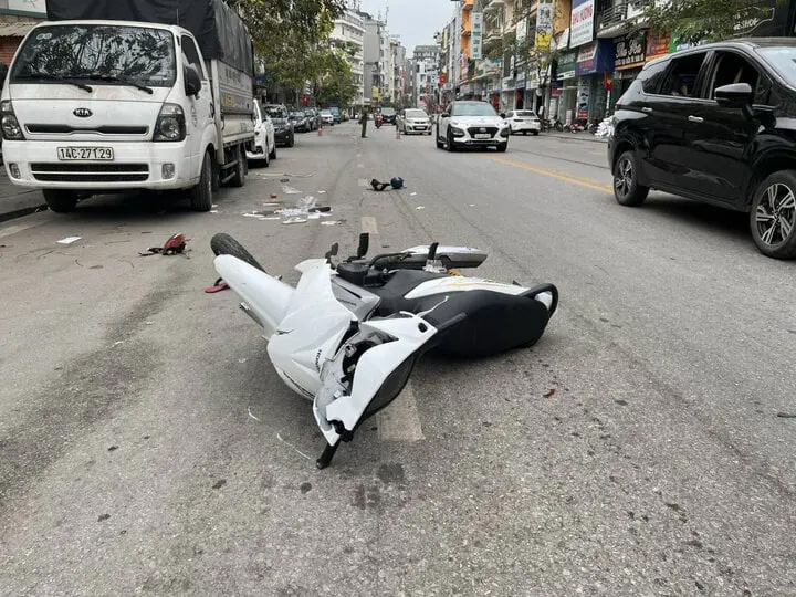 Tiếp đó, Mạnh vượt lên, ép xe của Ngọc làm xe máy đâm vào xe ô tô con và xe tải đang đỗ bên phải đường.