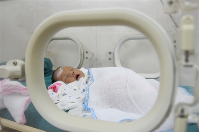 Trước khi mẹ quay về, cháu Quàng Thị Thông vẫn được chăm sóc trong lồng kính.