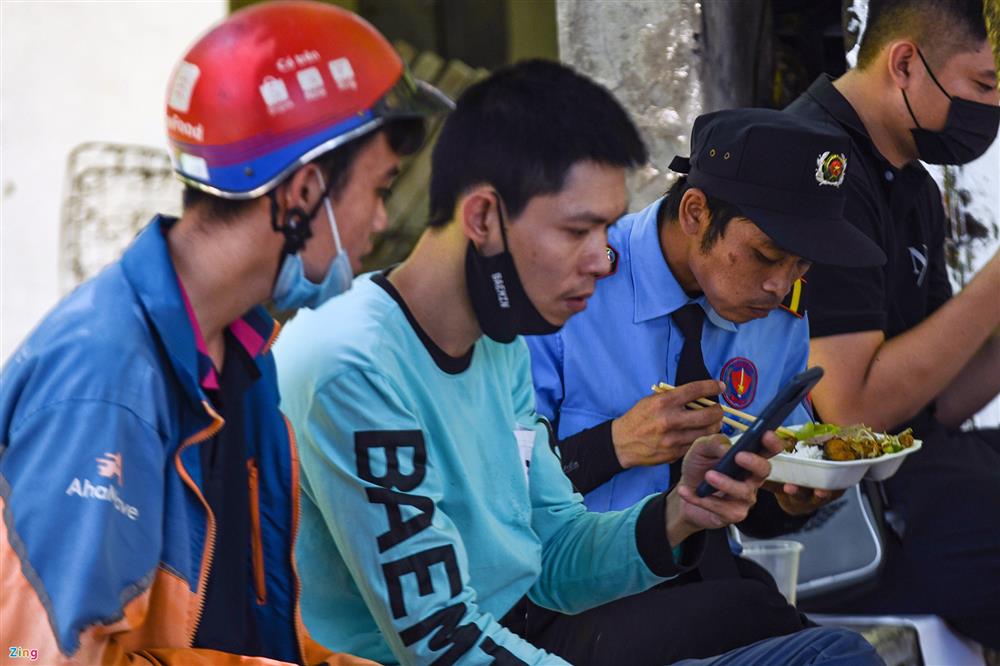 Sau lệnh đóng cửa các hàng ăn chỉ được phép bán mang về, nhiều người thường làm công việc ở ngoài đường như xe ôm, lái taxi, công nhân lao động... không có chỗ trú đành phải ngồi tại ghế công viên, vườn hoa, vỉa hè để dùng bữa trưa.