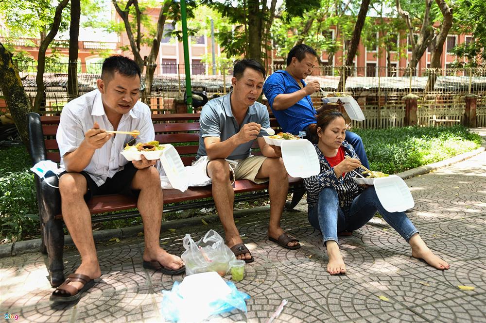 Ở vườn hoa, công viên dịp này không chỉ có công nhân, người lao động ăn và nghỉ trưa, mà còn có cả nay những nhân viên các công ty, văn phòng, cửa hàng... mặc áo trắng sơ vin, cổ thắt cà vạt... cũng đến sử dụng vườn hoa.