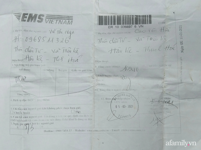 Bức thư được chuyển qua Bưu Điện từ Hà Nội