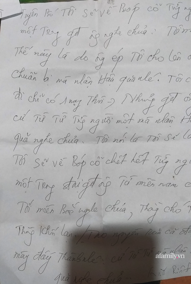Thứ 3, tôi thông báo cho ông biết, đồ đạc của nhà tôi là của gia đình tôi làm ra... Ở trong nhà ông mà sử dụng nó, tôi sẽ bóp cổ từng người một...", nội dung bức thư bà Nga gửi.
