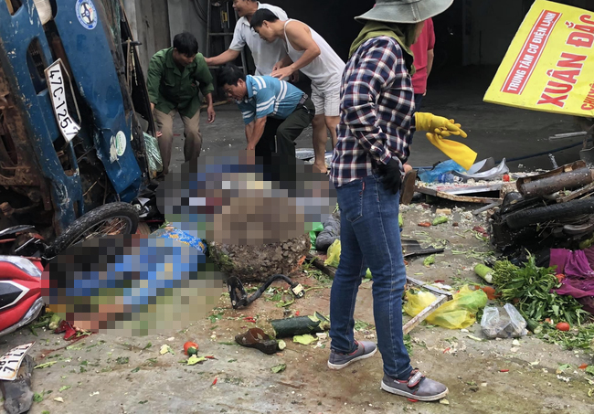 Theo ghi nhận, vụ tai nạn khiến ít nhất 3 người chết tại chỗ, 2 người đã tử vong tại BV. Tại hiện trường một chiếc xe tải lao vào sạp sau củ của người dân. Chiếc xe tải khác trong vụ tai nạn thì nghiến nhiều xe máy dưới gầm.