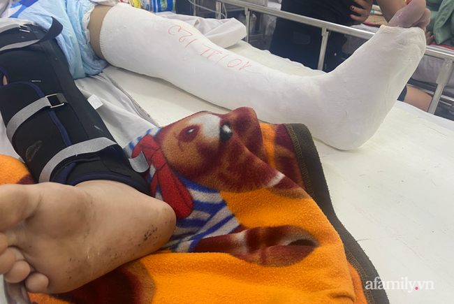 Bé được chuyển vào BV Nhân dân Gia Định, được sơ cứu, cố định bất động các xương bị gãy khoảng 50 phút rồi chuyển sang BV Nhi đồng 2.