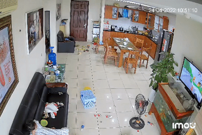 Thời điểm này, trong nhà chỉ có 3 trẻ nhỏ (Ảnh cắt từ video).
