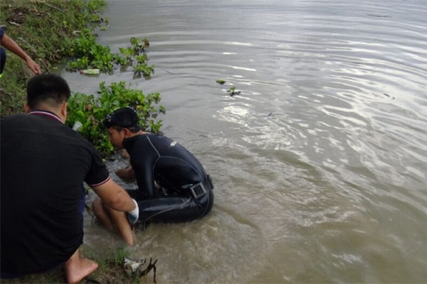 Sau đó ngồi chờ không có người qua lại, L. bế 2 cháu đi xuống sông cách bờ khoảng 3-4m thì nước ngập đầu cả 3 mẹ con. Do bị sóng đẩy vào trong, L. bế 2 cháu đi lên bờ, tuy nhiên lúc này 2 cháu đã tử vong.