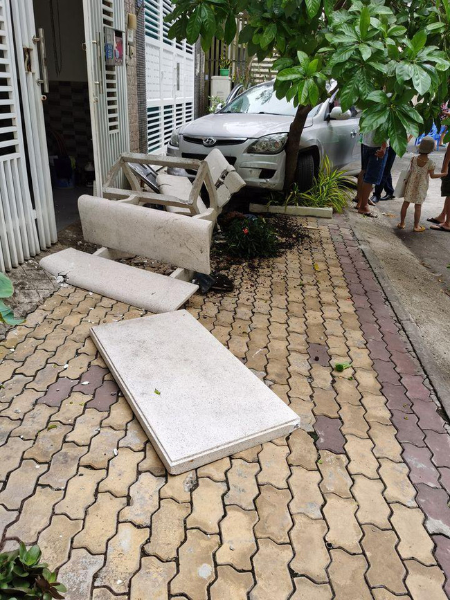 Về phía chiếc xe sau khi tông trúng nhóm người thì tiếp tục mất lái và đâm vào hàng ghế đá ở gần đó.