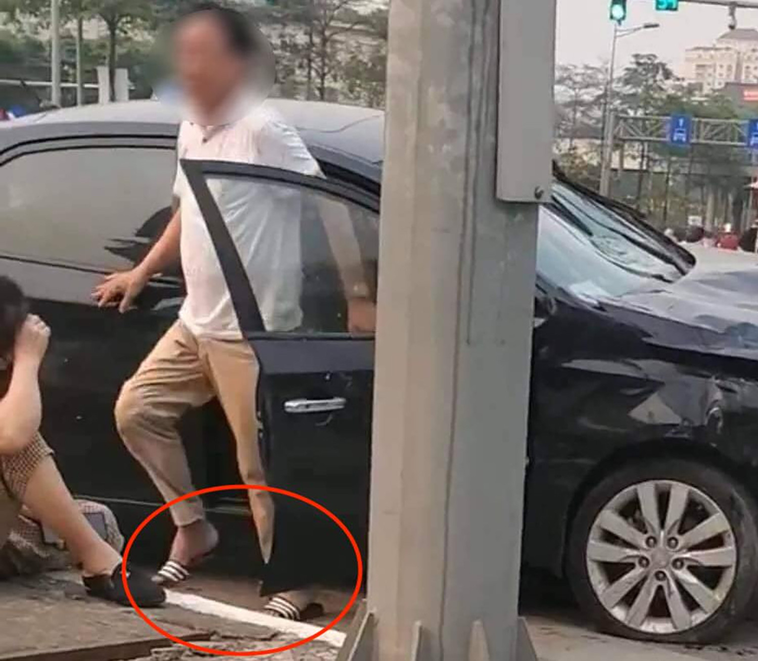 Sau khi gây ra tai nạn, ông Hoàng Ngọc Vĩnh bước xuống từ cửa phụ, chân đi đôi dép lê.