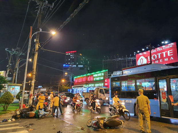 Hiện trường ngổn ngang nhiều mảnh vỡ từ các phương tiện.