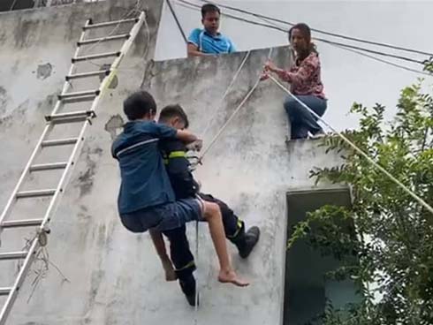 Tại hiện trường, chiếc xe hư hỏng toàn bộ, biến dạng, nằm dưới vực sâu khoảng 10 m so với mặt đường.