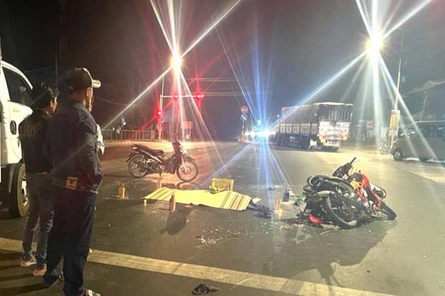 Tại hiện trường, một phụ nữ khoảng 35 tuổi tử vong tại chỗ, nhiều người bị thương nhẹ, 1 xe tải và 3 xe máy liên quan nằm ngổn ngang trên đường.