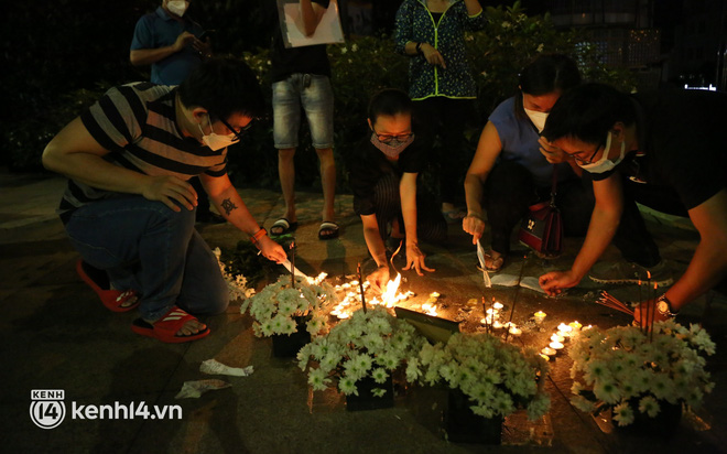 Sau khi lo hậu sự cho cháu gái, anh Vinh đã mang di ảnh cháu quay lại chung cư nơi bé tử vong để thắp nến cầu nguyện và tưởng nhớ. Những ngọn nến được thắp thành chữ "V.A" tại một góc sảnh chung cư khiến khiến nhiều người không khỏi nghẹn ngào.