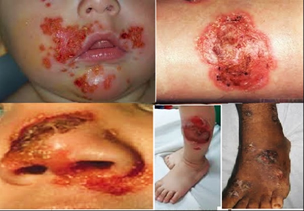 Biểu hiện của bệnh chốc. (Ảnh: Bệnh viện Nhi đồng 1).