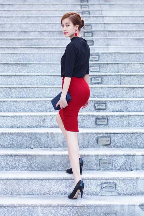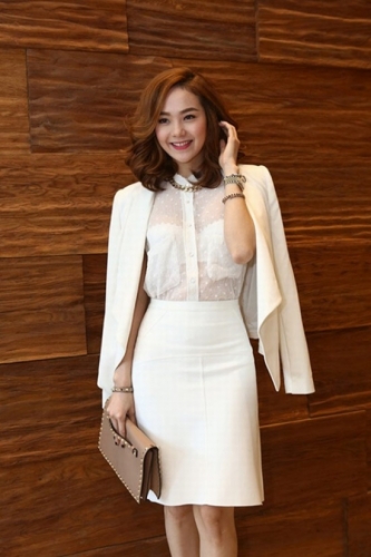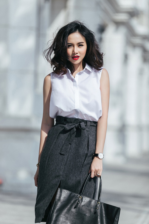 Diễm My 9x sang trọng, duyên dáng và nữ tính trong set đồ công sở này.