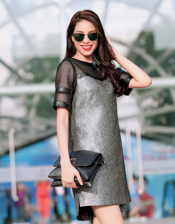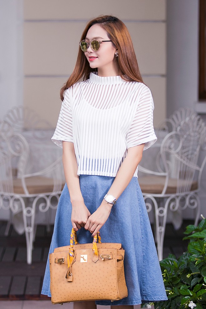 Kiều dáng thanh lịch cùng màu trắng nhã nhặn rất phù hợp với sự trẻ trung của Đặng Thu Thảo