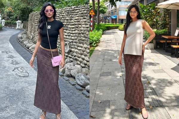 Vào dịp nghỉ lễ 30/4, H'Hen Niê dành thời gian bên gia đình. Cô lựa chọn trang phục rộng rãi gồm áo khoác mỏng và chân váy.