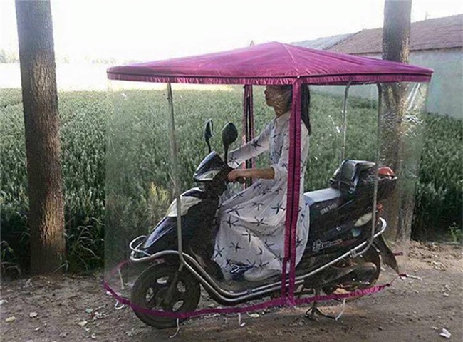 Mặc vậy cho đỡ nước mưa bắn thôi mà.