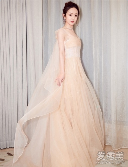Triệu Lệ Dĩnh được khen ngợi hết lời với mẫu váy điệu đà tông nude.