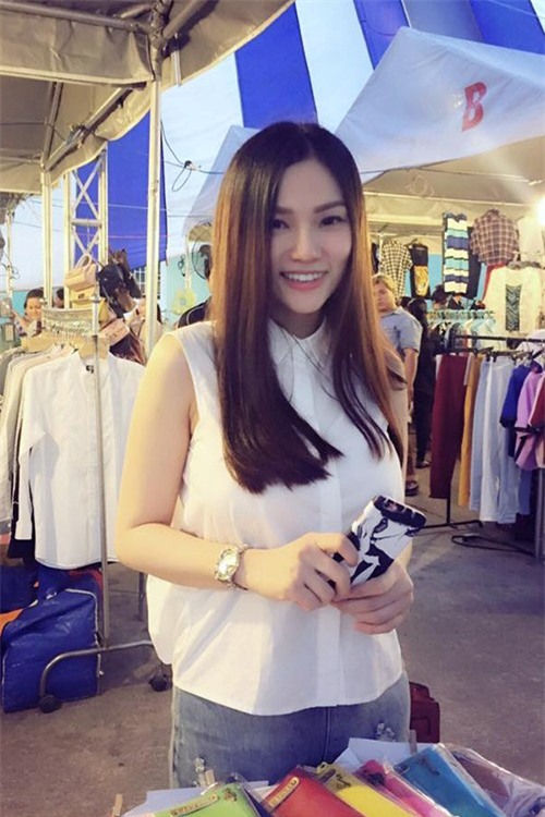 | Trang Nhung có lẽ đã mất một thời gian dài hơn để về dáng được như Thu Thủy. Tuy có tăng vài cân nhưng cô vẫn rất trẻ trung trong trang phục sơ mi, quần jeans đơn giản. |