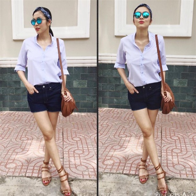 | 1 tháng sau sinh, Hà Tăng xuất hiện với hình ảnh hết sức trẻ trung, năng động trong bộ trang phục sơ mi, quần shorts. |