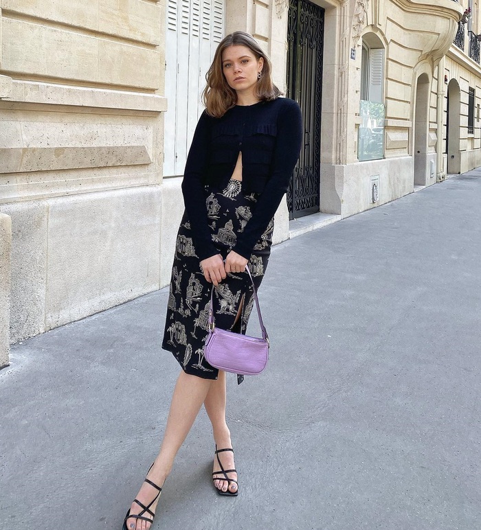 Chân váy xẻ tà rất được các quý cô người Pháp ưa chuộng, vì sự nổi bật và khả năng tôn dáng. Với chân váy xẻ tà, người diện không cần phối đồ quá cầu kỳ. Chỉ đơn giản là kết hợp chân váy xẻ tà với áo len màu be, đi boots cao cổ, người mặc sẽ hoàn thiện được outfit sành điệu, thanh lịch.
