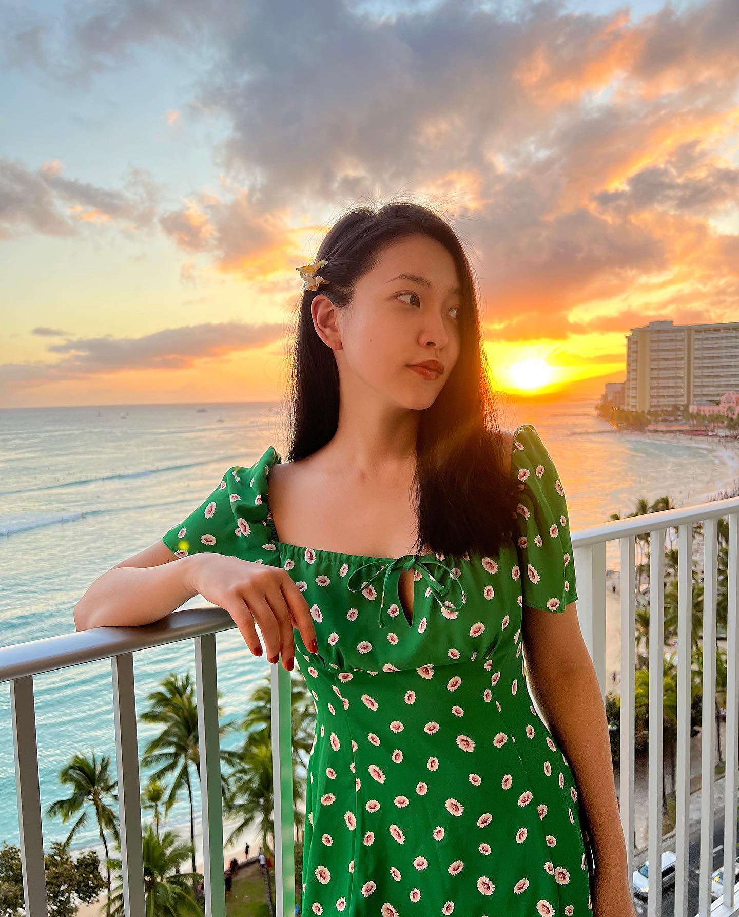 Váy hoa là lựa chọn không nên vắng bóng trong vali đi du lịch của chị em. Vì mẫu váy tông màu xanh, họa tiết hoa đã nổi bật, nên Yeri không nhấn phụ kiện quá cầu kỳ. Cô nàng chỉ đơn giản là tô điểm cho mái tóc một chiếc kẹp tóc xinh xẻo. Chi tiết cổ vuông, tay bồng của mẫu váy đã mang đến nét sang trọng cho người mặc.