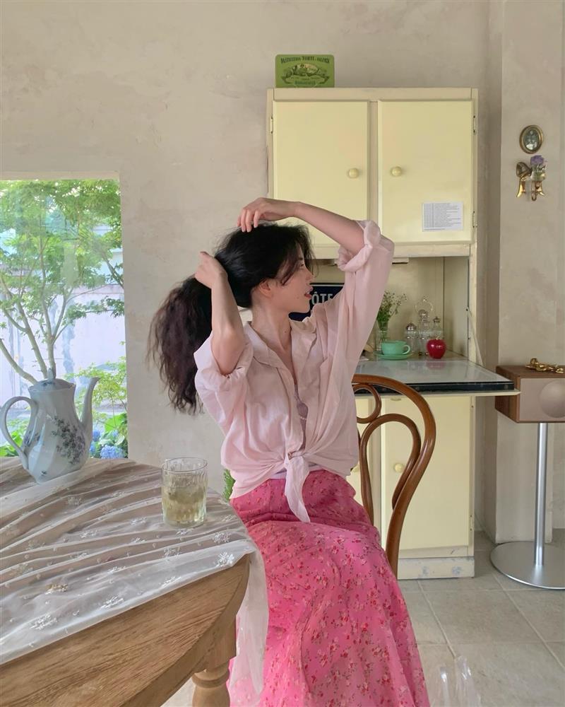 Cho những cô nàng cá tính, bạn đừng ngại chơi trội với 1 chiếc chân váy dài màu hồng nổi bần bật như cô nàng này. Cô mix crop top với sơ mi dáng rộng, chân váy họa tiết. Cả set đồ đều mang tông màu hồng nhưng có sự khác biệt về sắc độ để tránh rối mắt.