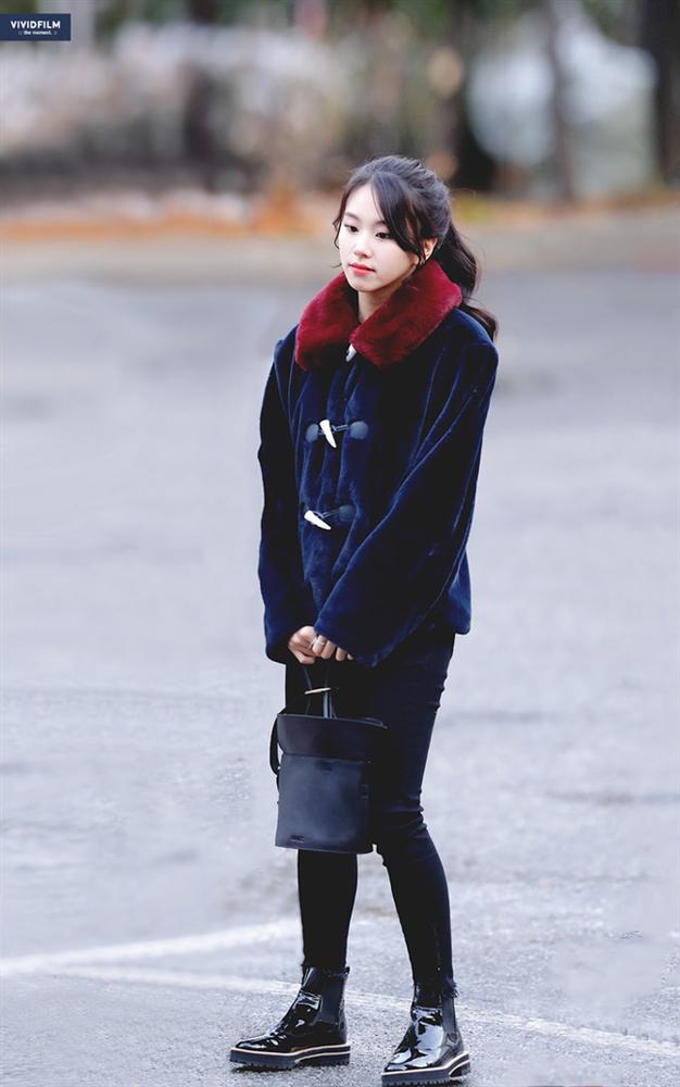 Chiếc áo lông mịn của Chaeyoung trông vừa ấm áp, vừa sang chảnh, khi kết hợp với quần skinny và boots thì điểm sành điệu cũng được tăng thêm gấp bội.