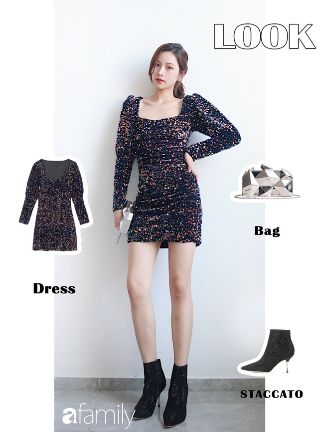 Và tất nhiên, để nổi bật nhất thì các nàng nên chọn những kiểu đầm sequin ngắn, nhưng hãy chọn kiểu dài tay và mix cùng boots cao cổ nhé.