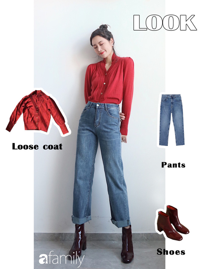 Biến chiếc áo cardigan thành 1 items cực thời trang và mix cùng quần jeans ống suông đang là xu hướng được nhiều cô nàng lựa chọn hiện nay. Đừng quên giúp cho set đồ của mình nhìn thời trang hơn bằng 1 đôi boots màu đỏ da bóng nhé.